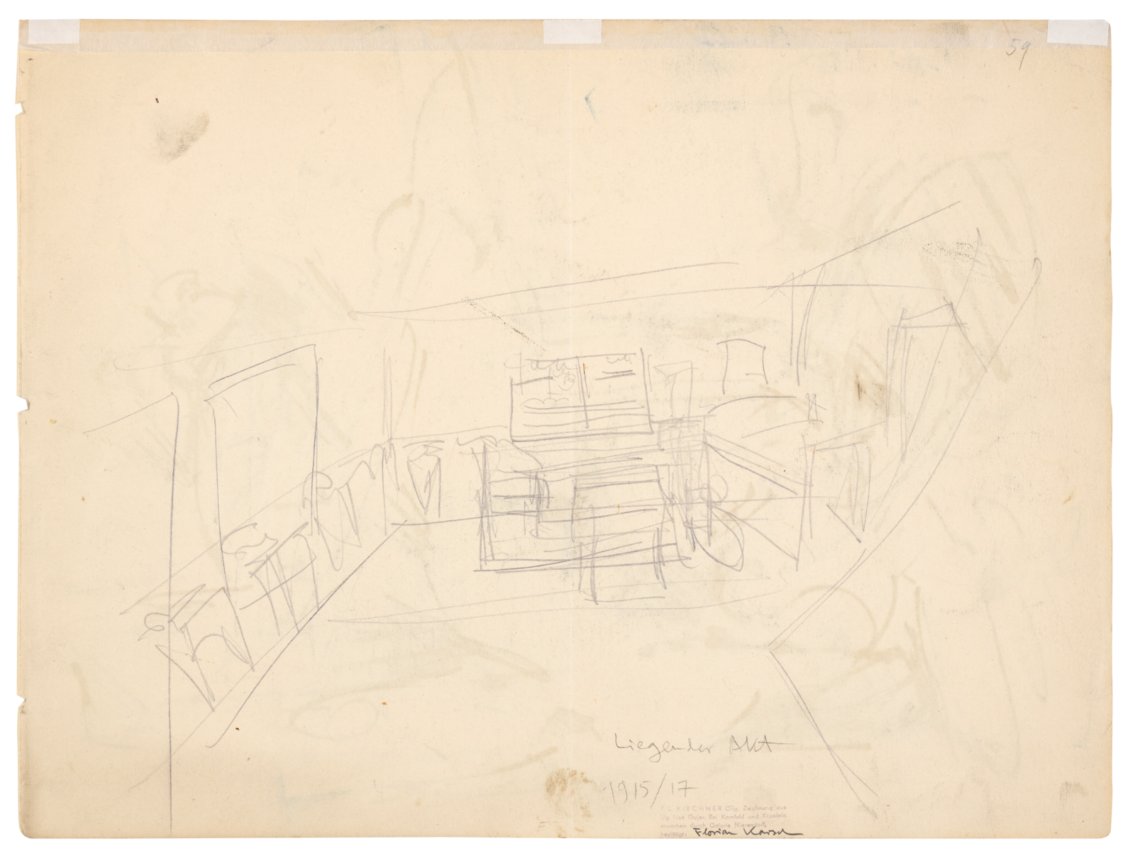 Die Zeichnung stammt aus dem Besitz der Schweizer Textilkünstlerin Lise Gujer (1893–1967), die eng mit Ernst Ludwig Kirchner zusammenarbeitete. Gujer dürfte das Blatt direkt vom Künstler oder dessen Lebensgefährtin Erna Schilling (1884–1945) erhalten haben. Später gelangte die Arbeit mit rund 20 weiteren Skizzen in die Sammlung des Kirchner-Experten Karlheinz Gabler (1920–1985) nach Frankfurt am Main. Aus Gablers Nachlass kam das Konvolut 1999 in den Bestand des Brücke-Museums.