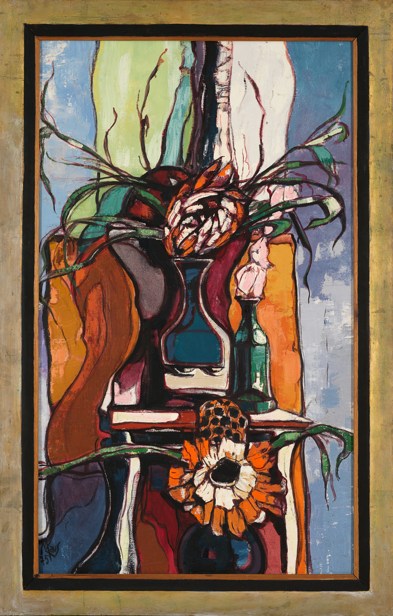Stilleben mit Pflanzen, Blumen und Früchten