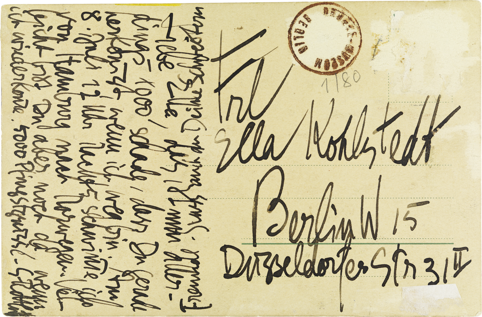 Aus dem Vermächtnis von Elisabeth Kohlstedt (1895–1979) gelangten 1980 und 1982 einige bemalte und an sie adressierte Postkarten und Zeichnungen von Karl Schmidt-Rottluff [Inv.-Nr. 9-13/82, 1/80] ins Brücke-Museum. Kohlstedt hatte den Künstler 1910, in Dangast kennengelernt, und ist daraufhin ein Leben lang mit ihm in Austausch geblieben.