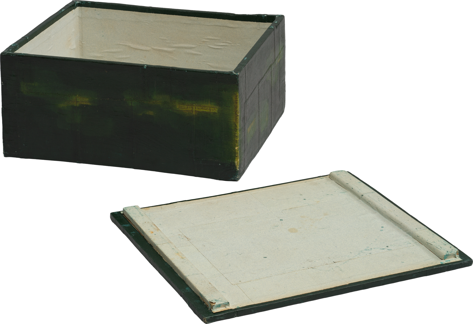 Karl Schmidt-Rottluff, Leinenbezogener grüner Holzkasten, 1945, Holz, mit Leinen bezogen, farbig gefasst in Grün, Innen mit Papier ausgekleidet, Brücke-Museum, Karl und Emy Schmidt-Rottluff Stiftung, © VG Bild-Kunst, Bonn 2025