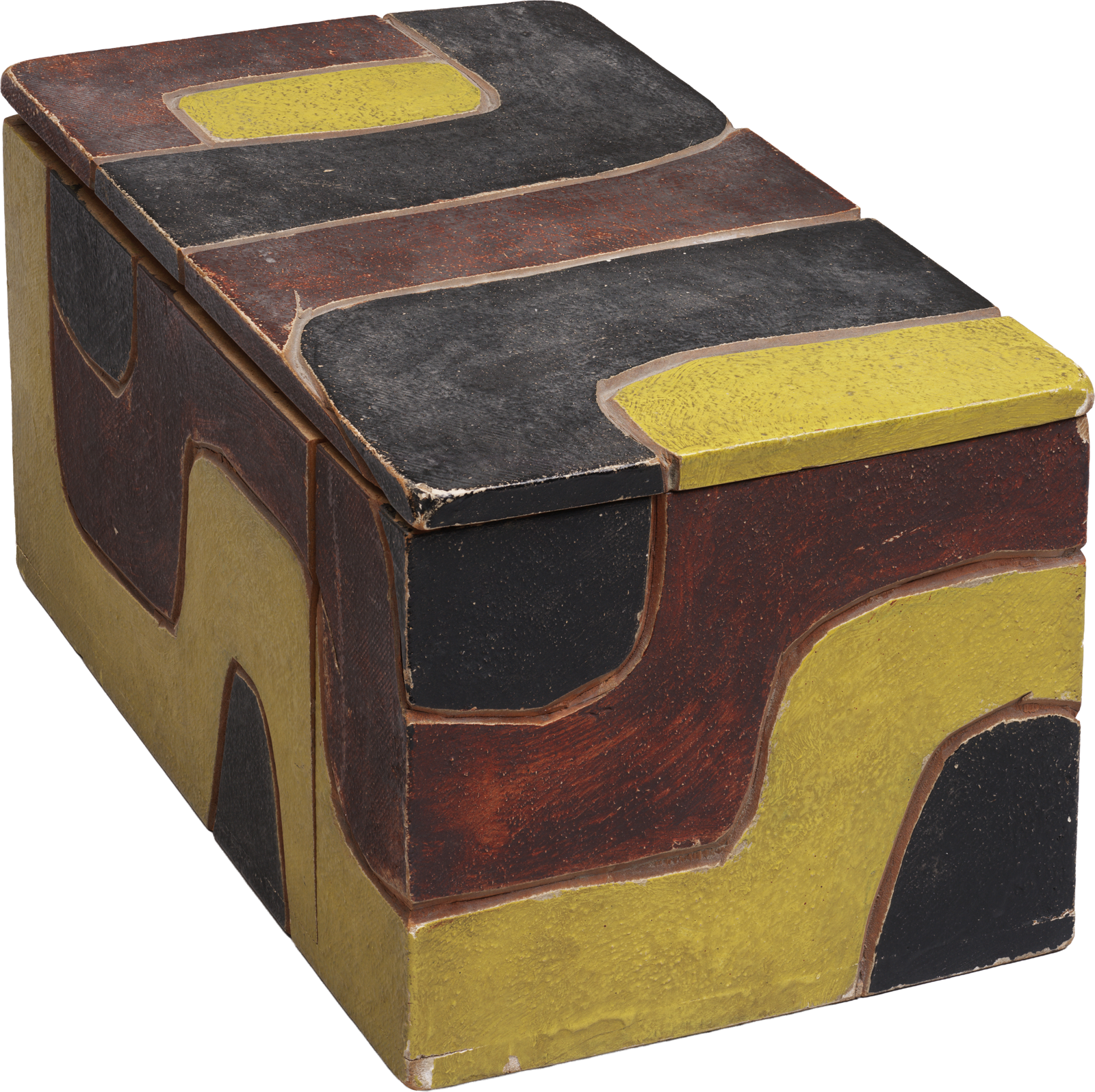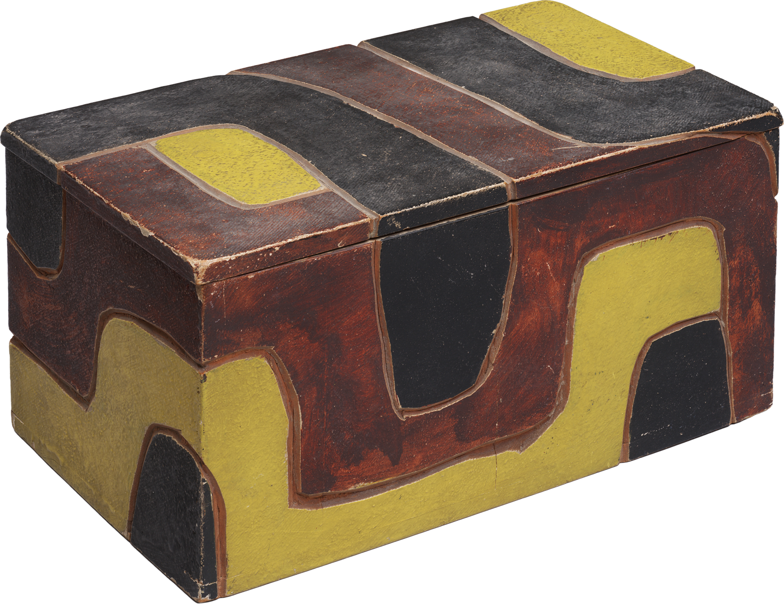Holzkasten mit farbig gefasstem Ornament