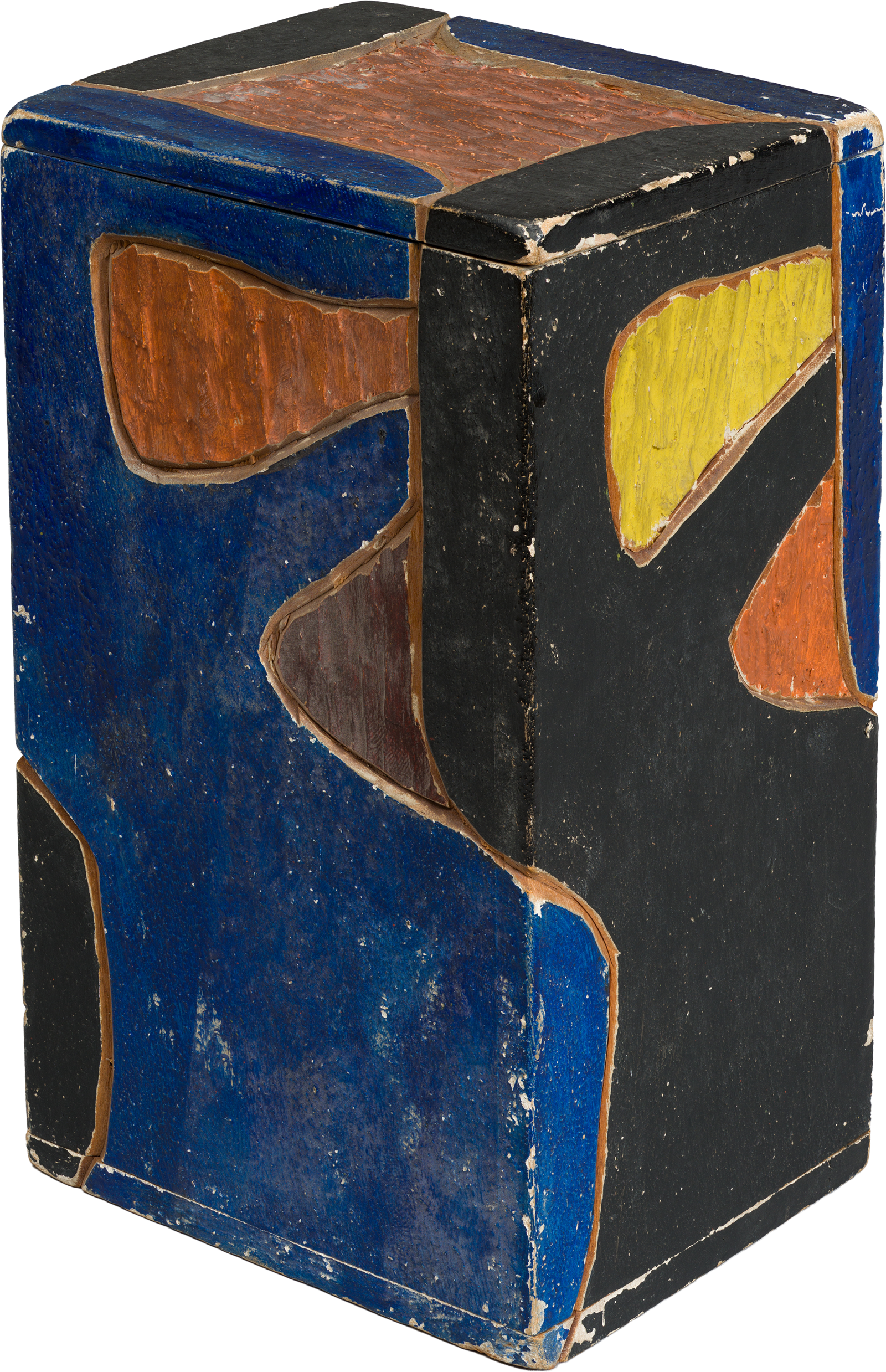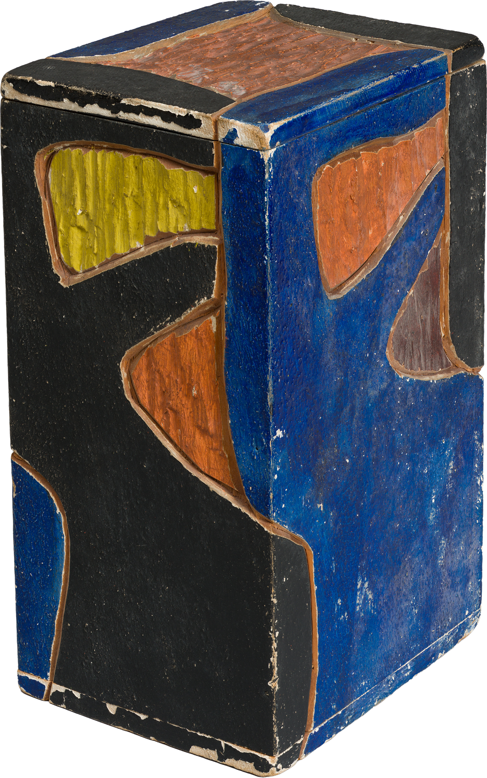 Holzkasten mit farbig gefasstem Relief (hoch)